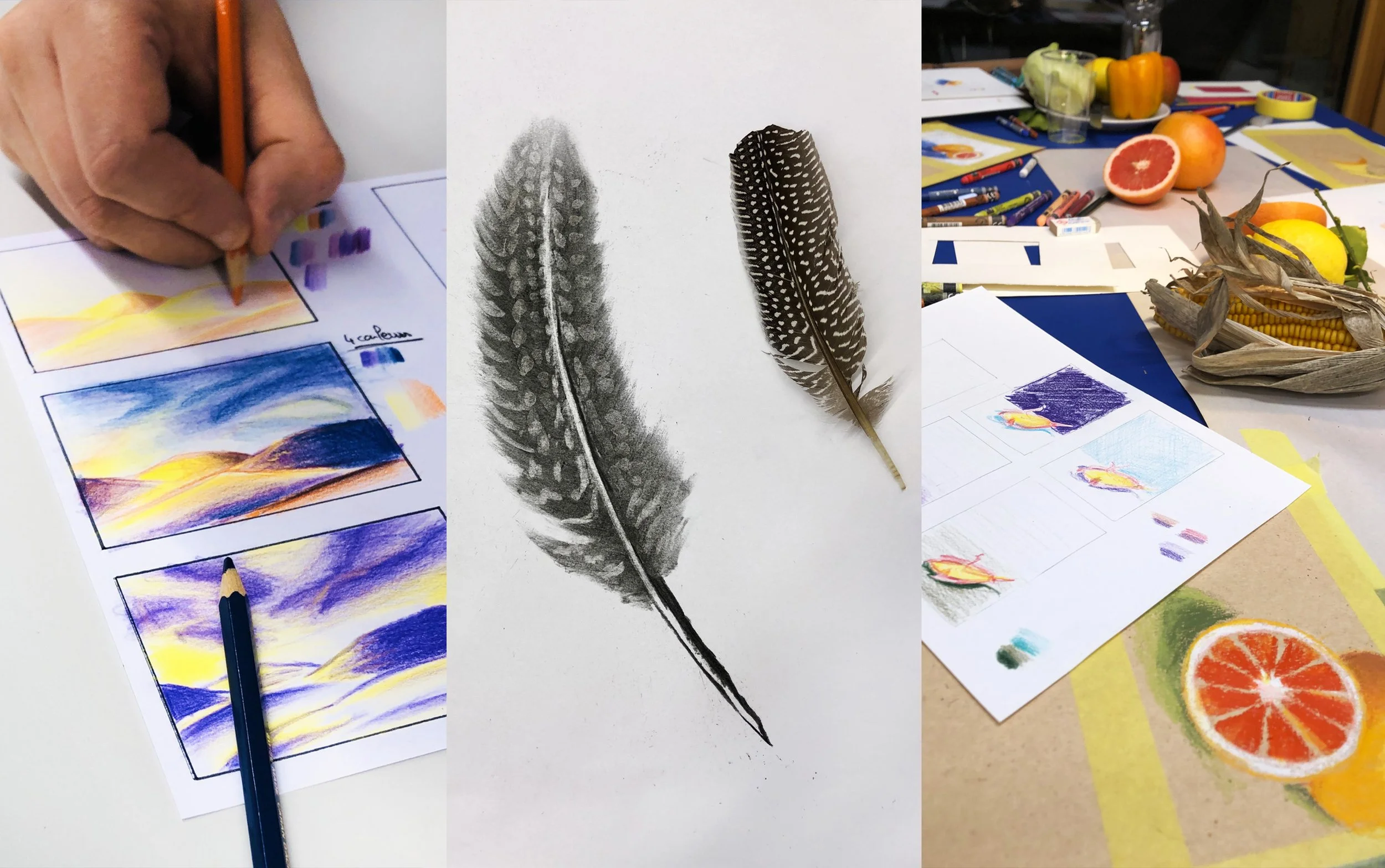 I offer drawing classes, graphic recording, and live event illustration. I teach a drawing workshop at the Université Populaire de Bienne (French only), where participants explore diverse drawing techniques in a creative and supportive environment.